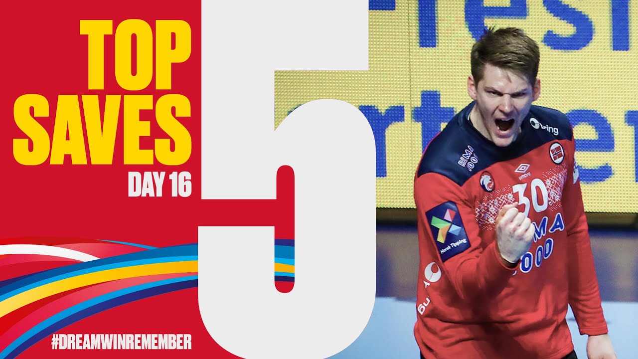 The top five saves of day 16 of the Men's EHF EURO 2020 were made by Torbjoern Bergerud (NOR), Alfredo Quintana (POR), Johannes Bitter (GER) and Andreas Wolff (GER).